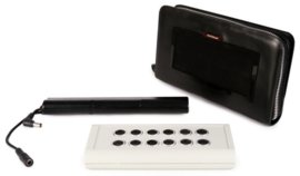 компактная модель с 8-ю излучателями ультразвуковой помехи; работает бесшумно, блокирует микрофоны на расстоянии до 7 м; имеет собственный аккумулятор, время автономной работы — 2 часа; в комплекте с прибором поставляется небольшой проводной пульт ДУ; для маскировки можно использовать сумку-клатч (идет в комплекте).