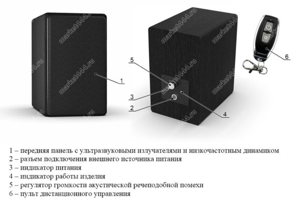 Акустическая помеха в дополнение к УЗ волнам — комбинация подавляющего сигнала состоит не только из нескольких видов УЗ излучения. В дополнение к УЗ помехе идет акустическая речеподобная помеха, которая излучается из динамика прибора. Данный звук накладывается на запись диктофона, делая неразборчивой речь, которую записало устройство. Уровень громкости акустической помехи регулируется специальной ручкой.